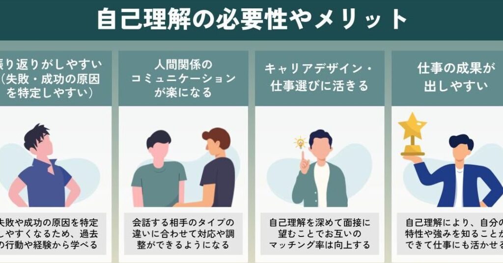 - 人間関係が改善される。 自己理解があると、他者とのコミュニケーションが円滑になる。