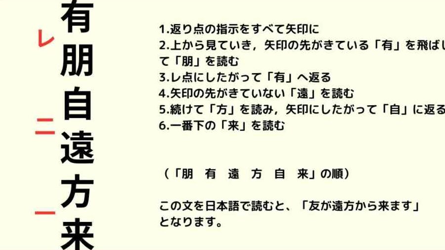 - 例文を確認する。 「彼は先生に教えられた」などの例文で、レ点がどのように使われるかを実感できます。