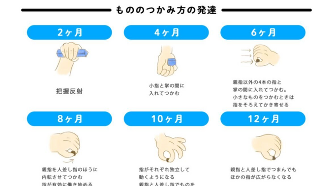 - 物を握る能力: 指の筋肉を使って、様々な物をしっかりとつかむことができる。