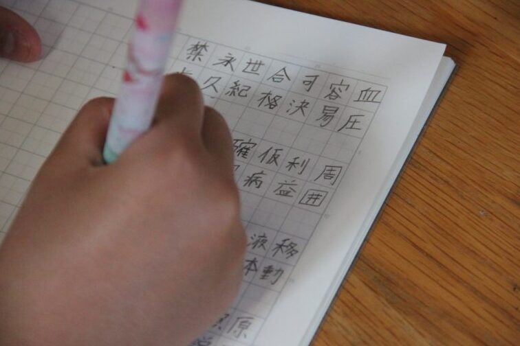- 生徒は漢字の書き方を練習する。特に、筆順に注意を払う。