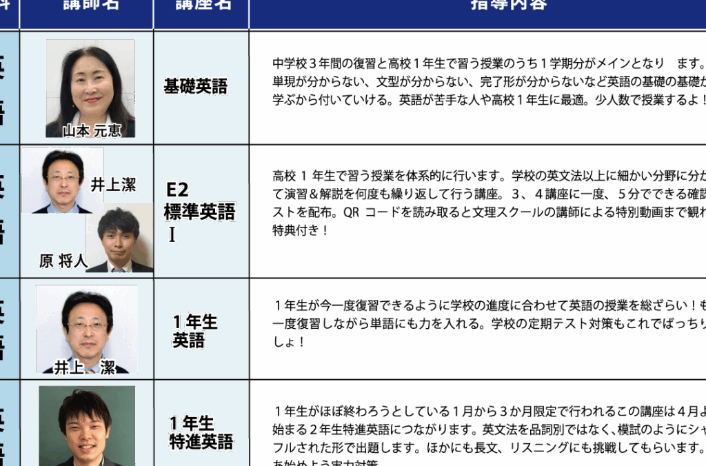 授業のカリキュラム