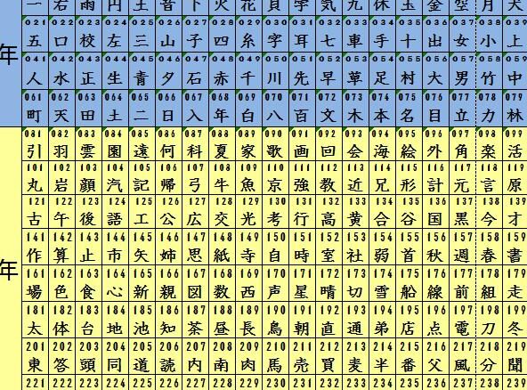 漢字は日本語学習の重要な要素であり、各学年で学ぶ漢字は異なる。ここでは、何年生でどの漢字を習うかを明確にする。子どもたちがそれぞれの学年で学ぶ漢字のリストを以下に示す。