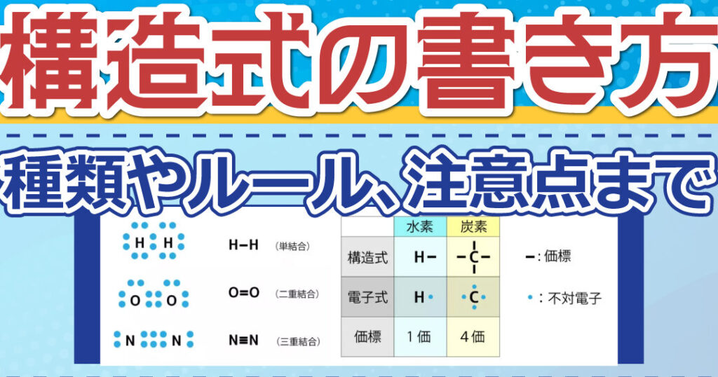 構造式は、原子と結合の配置を示す図です。分子の相互作用や特性を視覚的に理解できるツールとなります。以下は構造式に関連する基本用語です。