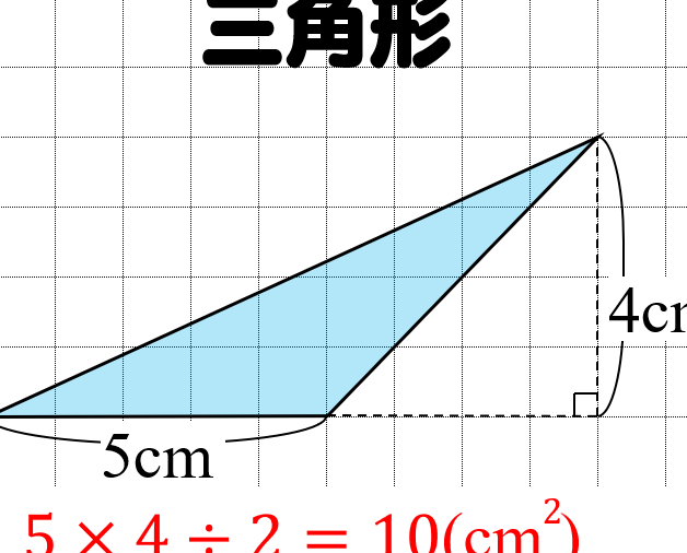 - 面積 = (底辺 × 高さ) ÷ 2
