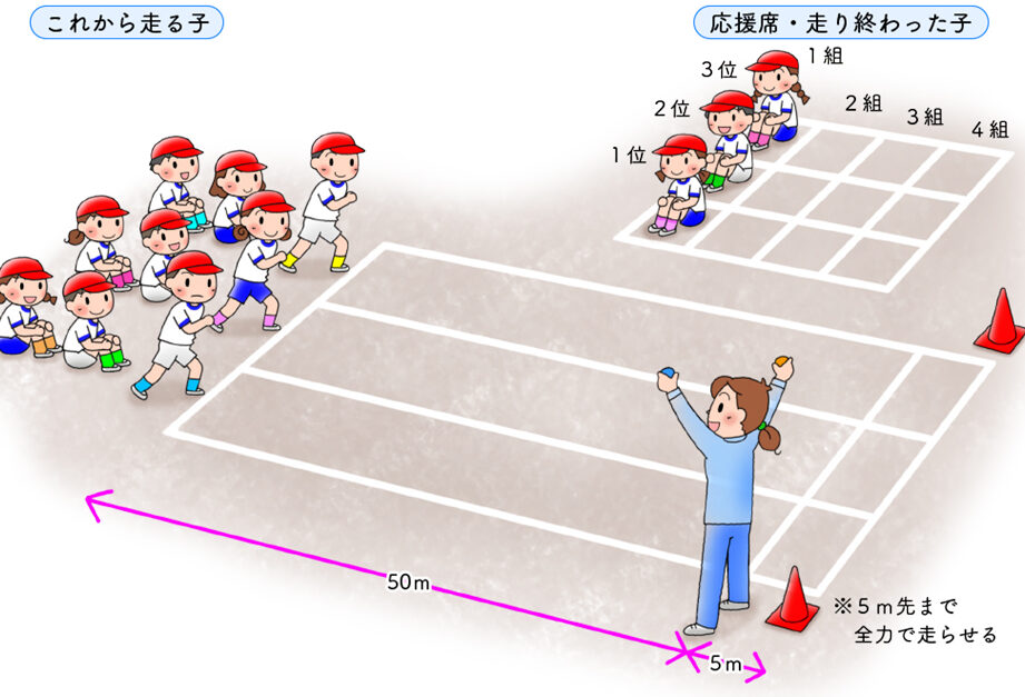 - 小学校3年生: 競争形式の走りを導入し、スポーツとしての楽しさを体験する。