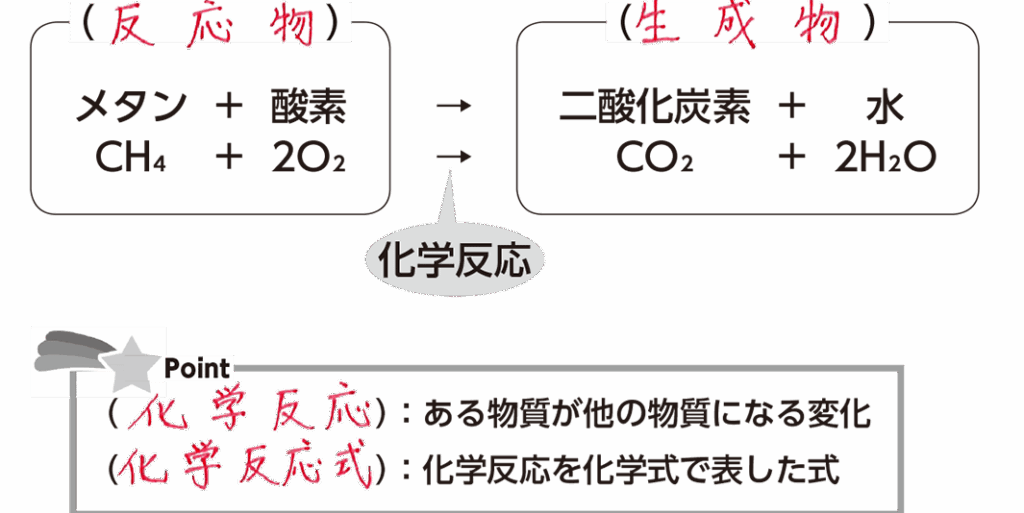 - 反応物と生成物の関係を理解する。
