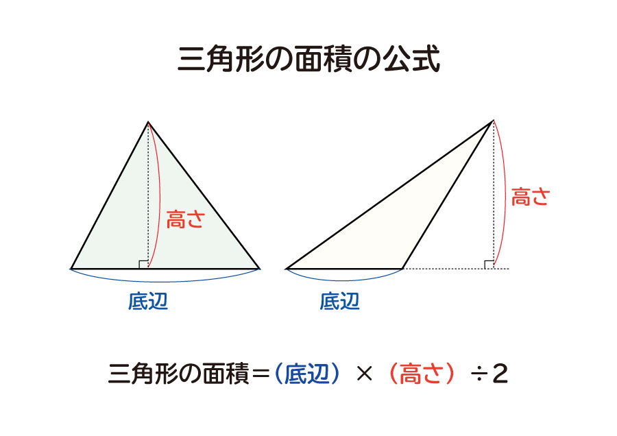 - 面積 = (底辺 × 高さ) ÷ 2