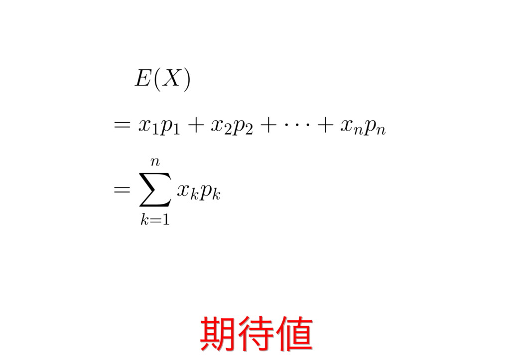 - 全ての期待値を合計する。 これがその事象の期待値になります。